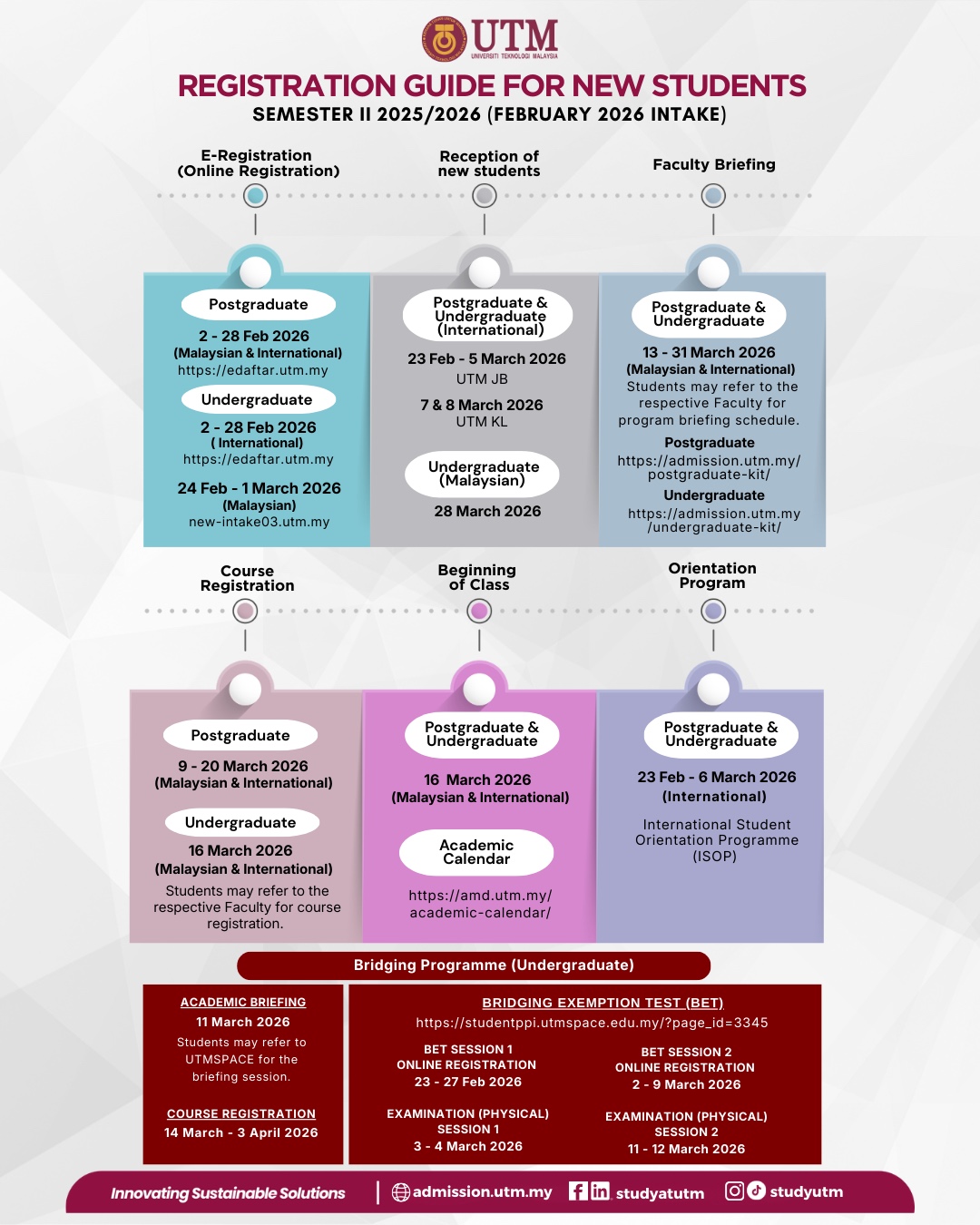 Programme Briefing & Course Registration Online via Webex Link: https://utm.webex.com/utm/j.php?MTID=mad66adf97ab235b8f3bebe8b2a66cb27